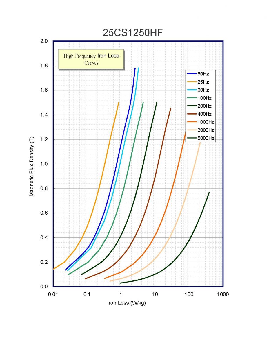 * Thickness: 0.25mm * Iron Loss W15/50 = 1.92 W/Kg W10/400 = 12.3 W/Kg Applications: Consumer electronics Industrial renewable power generation Automotives